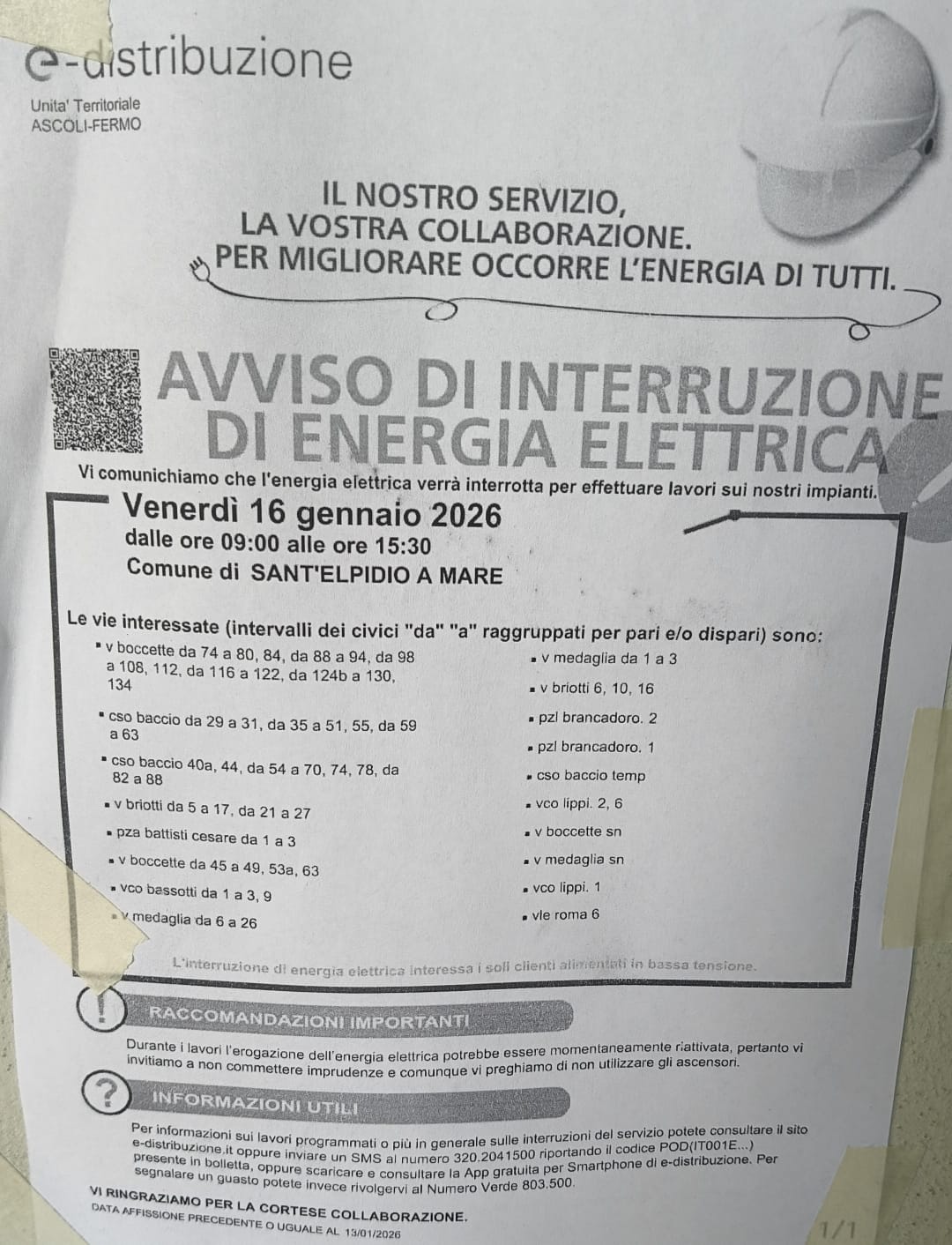 Si AVVISA che domani, venerdì 16/01/2026, dalle ore 9.00 alle ore 15.00 in Via Boccette verrà disattivata l'energia elettrica dall'Enel. Pertanto l'ascensore pubblico di Via Boccette nella fascia di orario indicato non potrà funzionare. Il varco a mezzo dell'utilizzo delle scale sarà comunque accessibile.